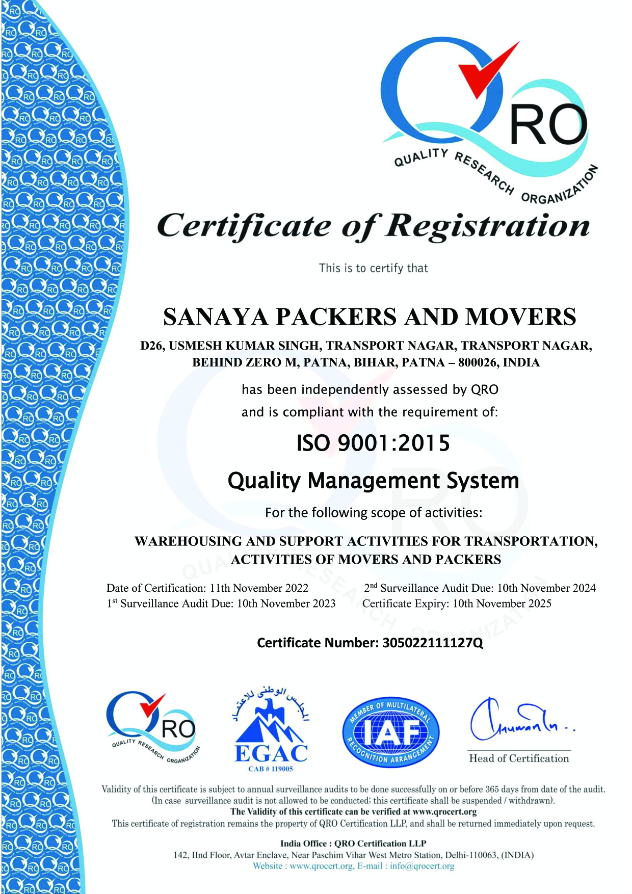 Sanaya Packers & Movers is one of the Leading service provider in moving of house hold Goods, Car, offices, Heavy Machines to all over India. Most trusted in the field of Packers and Movers company in Patna.